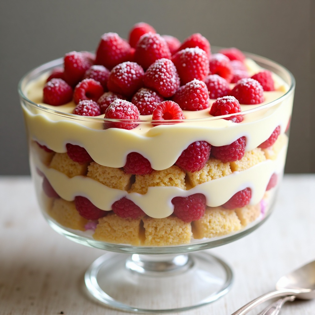 5. Distribuye las frambuesas frescas en la parte superior del Trifle, formando una capa uniforme.