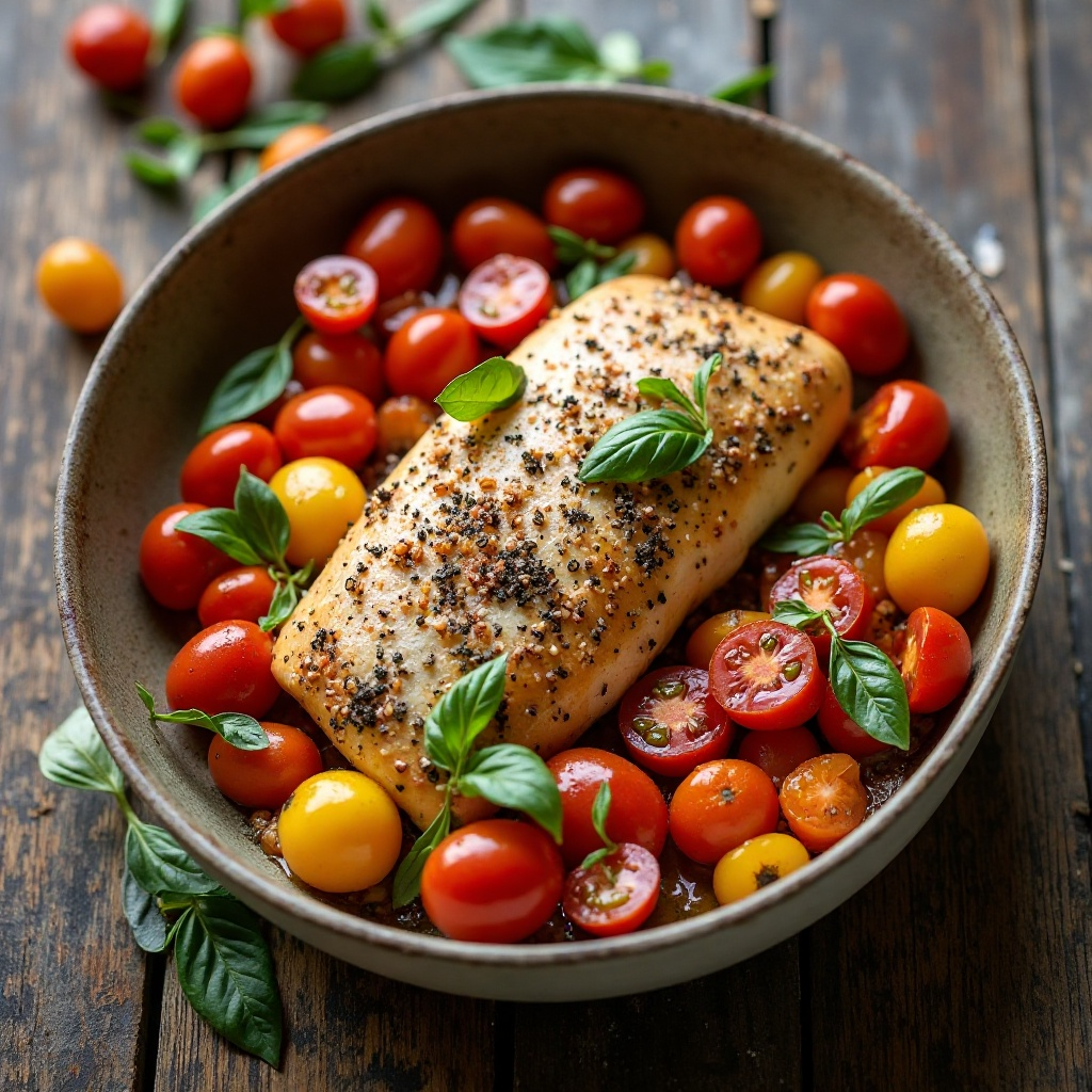 - Añade los tomates cherry y la hoja de laurel. Cocina a fuego medio durante unos 5 minutos, permitiendo que los sabores se mezclen.