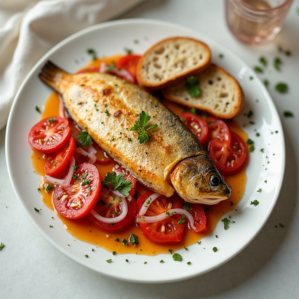 La trucha de río es rica en proteínas y grasas saludables. Los tomates aportan vitamina C y antioxidantes, mientras que la cebolla roja proporciona beneficios antiinflamatorios. La preparación al estilo Karlovacka es baja en grasa gracias a la adición de una sola cucharada de aceite, lo que la hace ideal para un menú equilibrado.