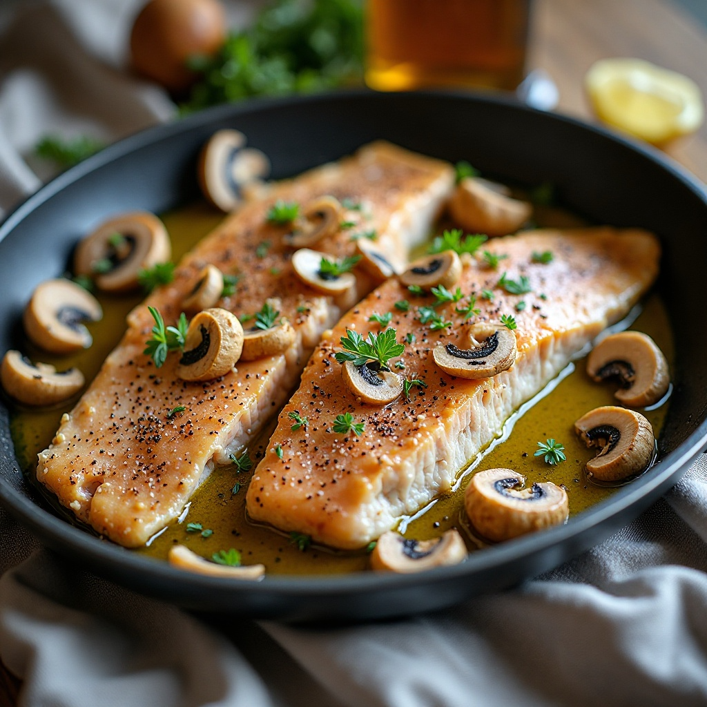 Receta de Trucha Arco Iris a la Mantequilla con Champiñones para Bigfork, Montana