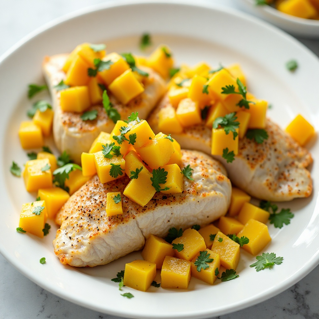 - Retira los filetes de la cacerola, colócalos en platos individuales y cubre con la salsa de mango preparada anteriormente.