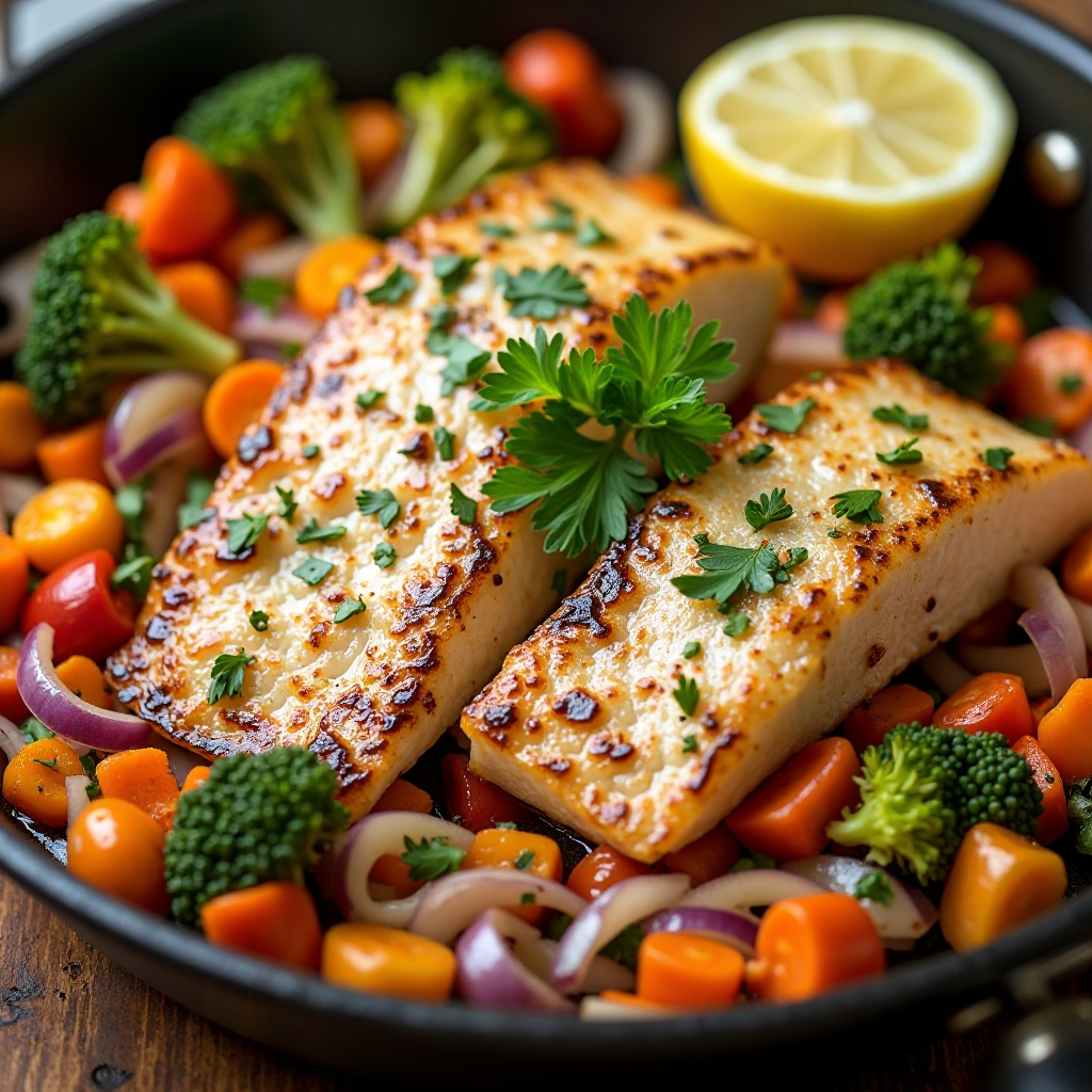 6. Retira la sartén del fuego, agrega un poco de sal y pimienta al gusto. Sirve los filetes de trucha sobre las verduras salteadas y espolvorea con perejil fresco. Sirve con jugo de limón a un lado.