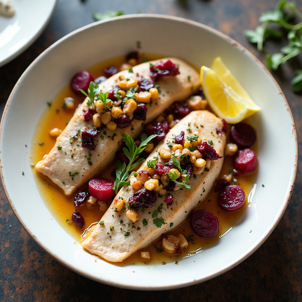 Receta de Trucha de Río al Horno con Salsa Champiñón y Remolacha