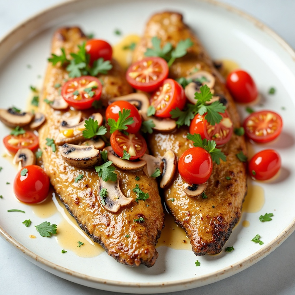Receta de Trucha de Río Sort en Salsa de Tomates Cherry y Champiñones