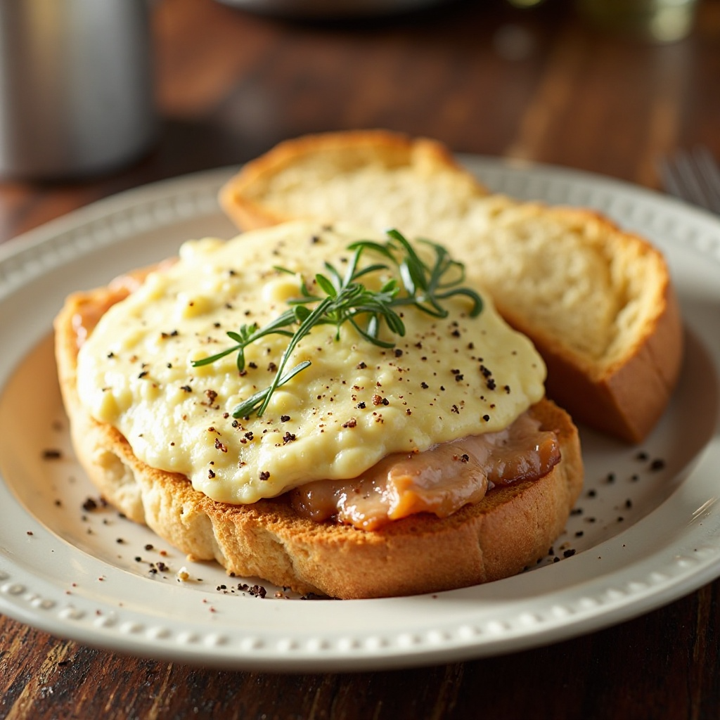 - Mientras tanto, calienta las rebanadas de pan tostado en una sartén con un poco de mantequilla hasta que estén doradas. Retira del fuego y cubre con queso parmesano.