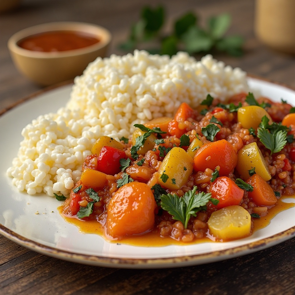 El ugali es un acompañamiento tradicional en Tanzania, esencial en muchas comidas. Esta versión combina el clásico ugali con una salsa de vegetales, sukumaa wanani, que añade color y sabor a la mezcla. Perfecto para disfrutar en cualquier momento del día, especialmente en reuniones familiares o festividades.