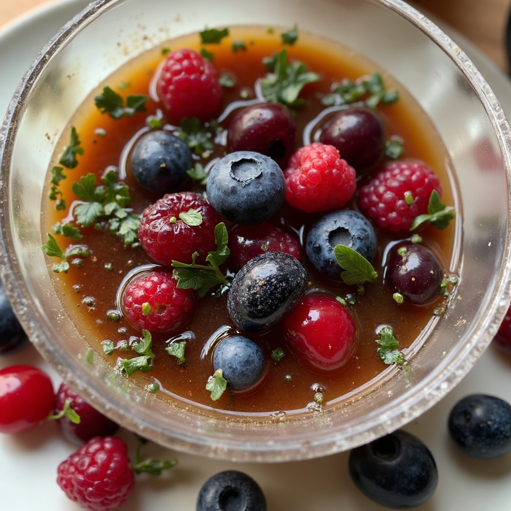 La vinagreta de frutas es un clásico de la cocina americana, adaptado a los ingredientes locales disponibles. En Washington, esta receta se enriquece con la variedad de frutas del bosque, que son abundantes y de excelente calidad debido a las condiciones climáticas favorables. La vinagreta puede disfrutarse sola como una salsa refrescante o servida con ensaladas, pan integral o incluso utilizada como marinada para carnes asadas.