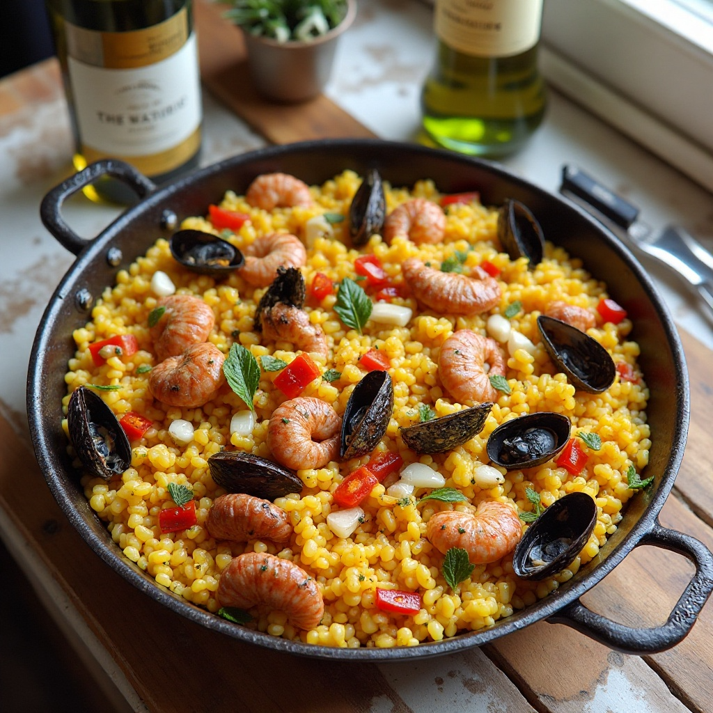 La paella es un plato emblemático de Valencia, pero su versatilidad permite adaptarla a diversas regiones y ingredientes locales. En la región de Nerja, en España, donde se producen vinos característicos de la Sierra de Almería, se puede incorporar estos vinos para darle un toque distintivo a este clásico. Esta receta ofrece una versión con una base de arroz y mariscos, enriquecida con vinos locales que aportan un sabor único y profundo.