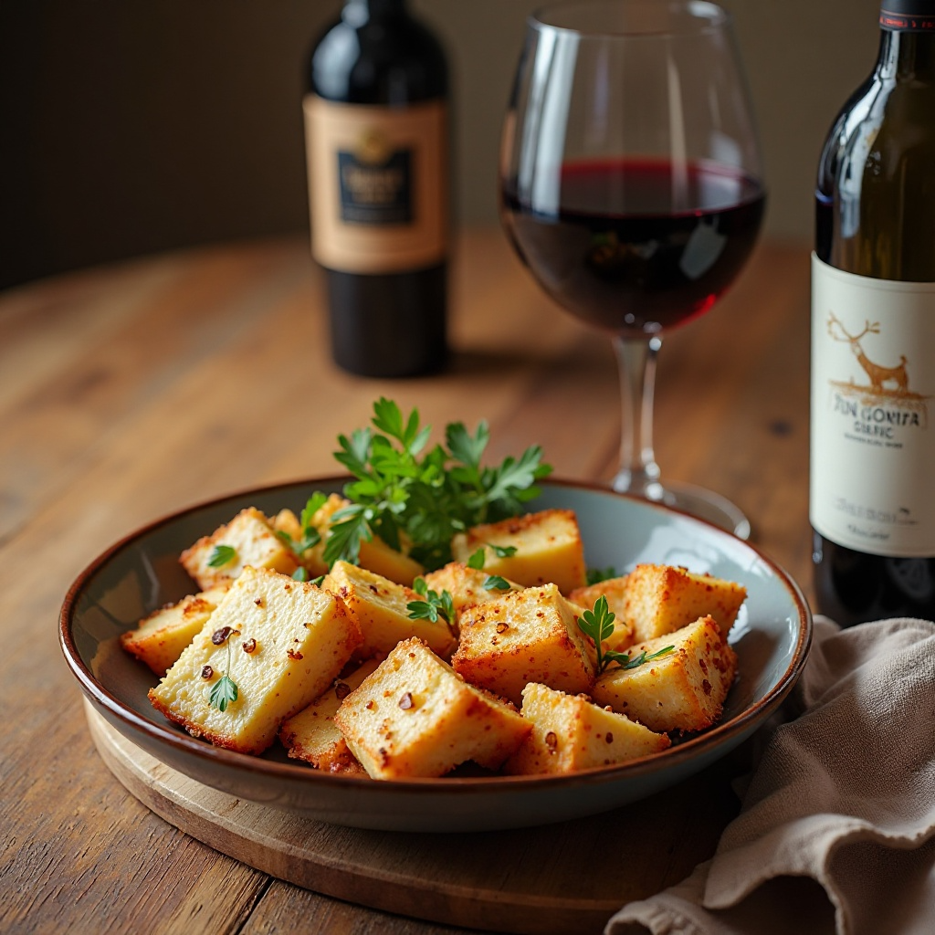 - Sirve la mezcla de queso y reducción de vino tinto en platos individuales, asegurándote de incluir algunos cubos de queso crujientes. Sirve con pan de ajo o bruschetta para una experiencia completa.