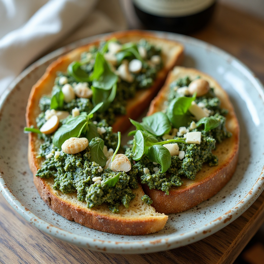 Receta de Vino Terroir Canadiense y Pesto de Espinacas con Pan Integral