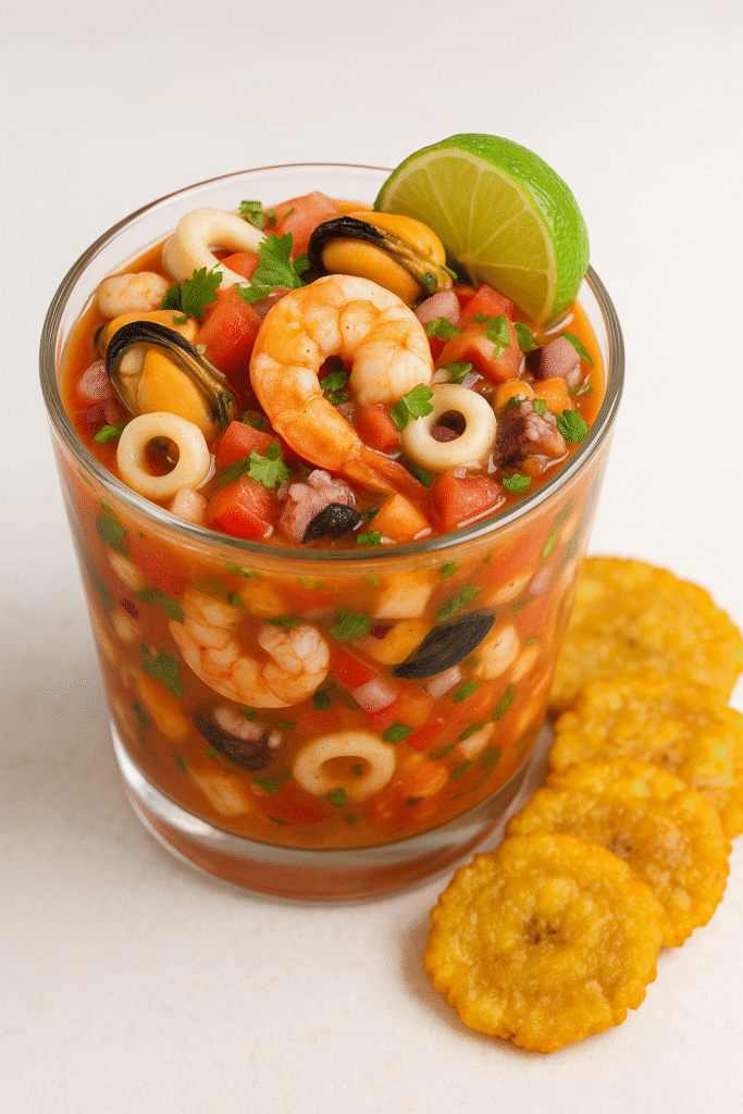 El «Vuelve a la Vida» es un cóctel de mariscos refrescante y lleno de sabor, muy popular en las costas venezolanas, especialmente en Puerto Cabello, una ciudad con una rica tradición marinera. Este plato es famoso por su mezcla de mariscos frescos y un aderezo vibrante, ideal para los días calurosos. En Puerto Cabello, se le da un toque especial con ingredientes locales y una sazón bien característica.