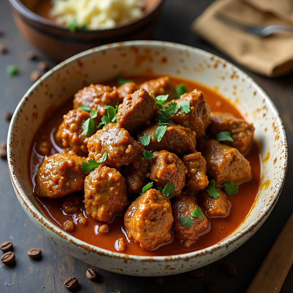 El café utilizado en esta receta no solo aporta un sabor único, sino que también es conocido por sus propiedades antioxidantes. La carne de vacuno o cordero utilizada proporciona proteínas esenciales. Sin embargo, es importante considerar las opciones de carne según las preferencias personales y dietéticas. Este plato también puede ser disfrutado como una alternativa para aquellos con restricciones al gluten, ya que no contiene trigo.