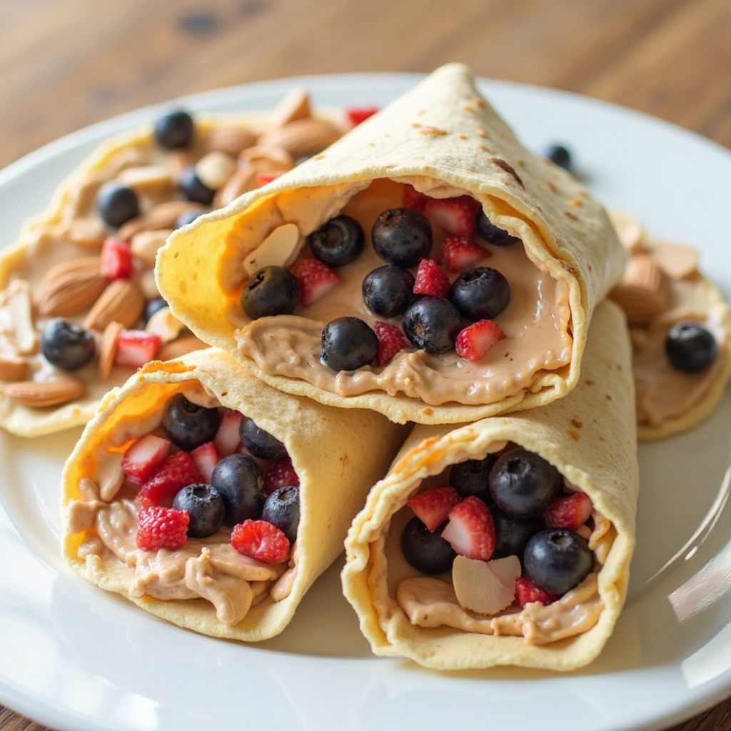 2. Extiende cada tortilla sobre una superficie plana y cubre completamente con la mezcla de crema de cacahuete, dejando un borde alrededor sin cobertura para el doblado final.