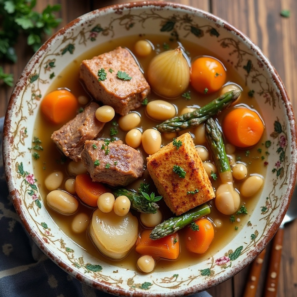 El cocido montañés es un plato tradicional cántabro que se ha convertido en un símbolo culinario de Santillana del Mar, un pueblo situado en la región de Cantabria, España. Este plato refleja la rica herencia agrícola y ganadera de la zona, utilizando ingredientes locales como judías blancas, garbanzos, carnes variadas y verduras frescas. El cocido montañés es una comida reconfortante que se disfruta tanto en hogares familiares como en restaurantes de toda España.